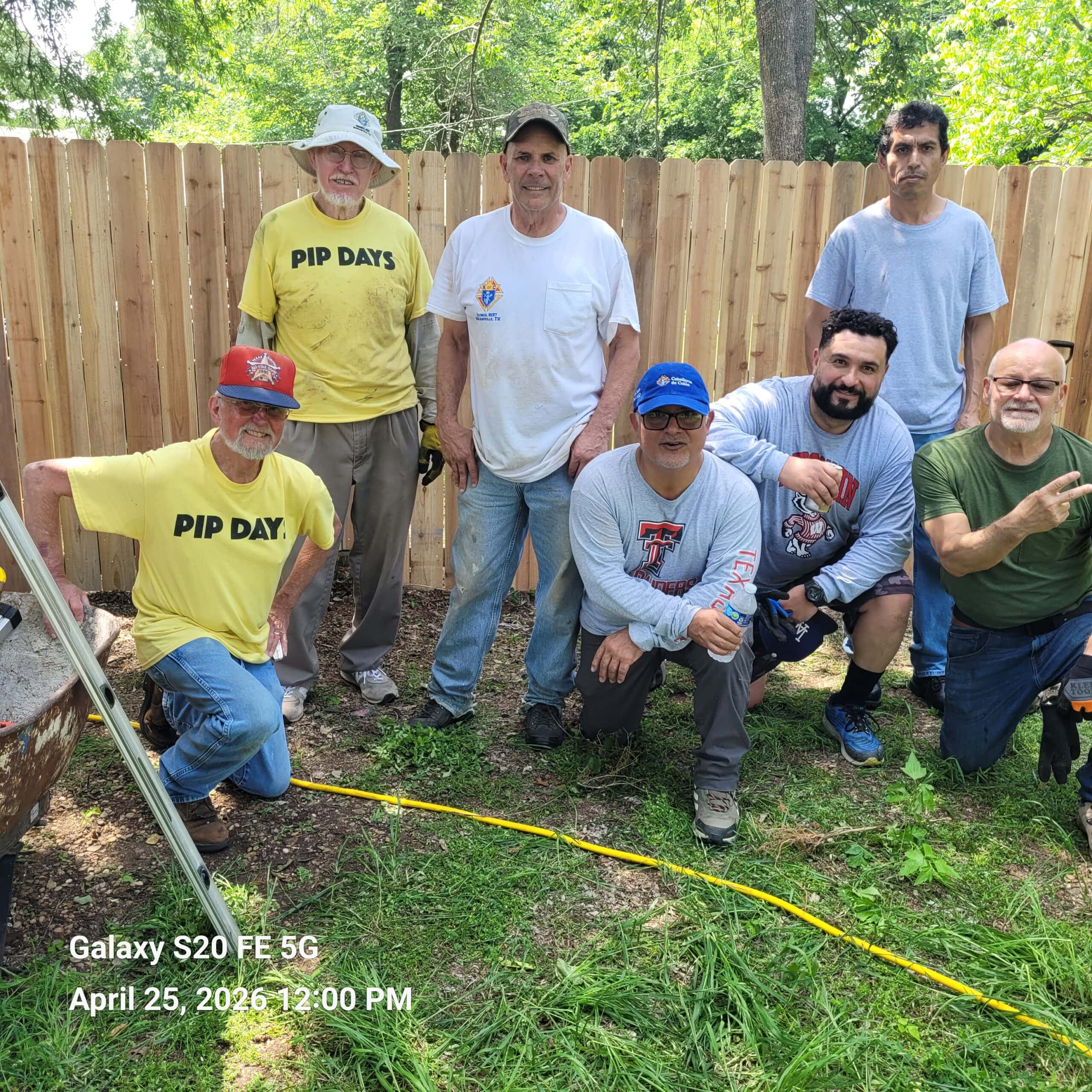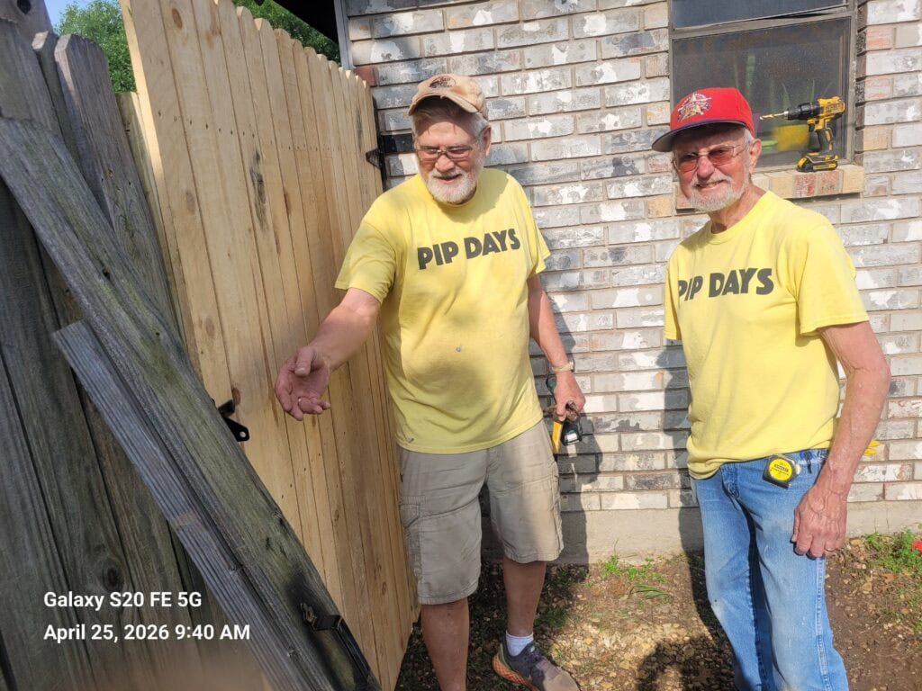 By the way, this was a Property Improvement Program project. As you know, for the past 8 years, our council has help each spring and fall by taking on a project during P.I.P. Days. Some of us even wore our original P.I.P. shirts. And while the fence was being constructed, Jesus Aguirre and Jesus Medina were busy painting the fascia around the entire perimeter of the home. That went well especially after Jesus Montelogo brought over an 8’ stepladder so Jesus Medina could reach the peak of the dormer on the front of the home.