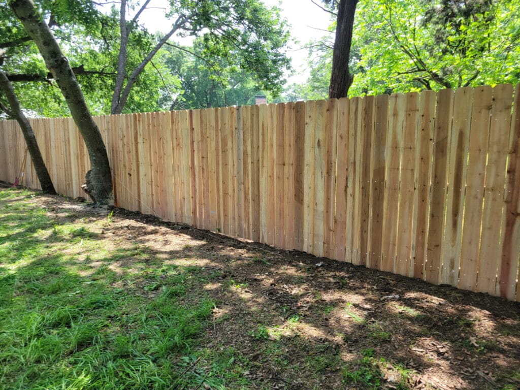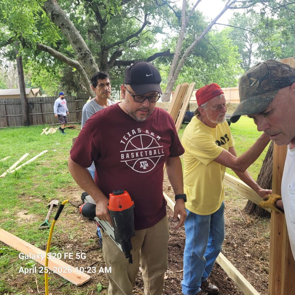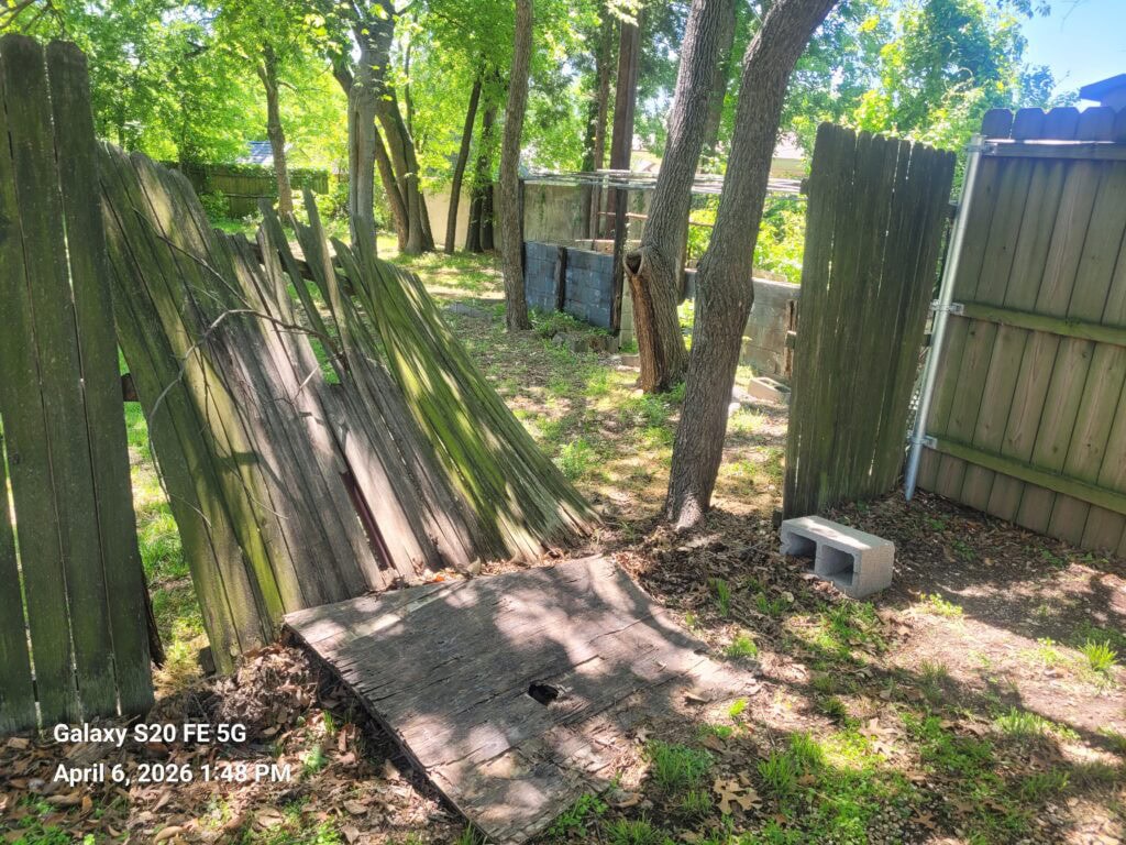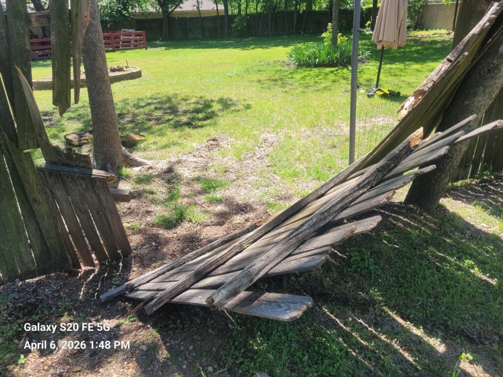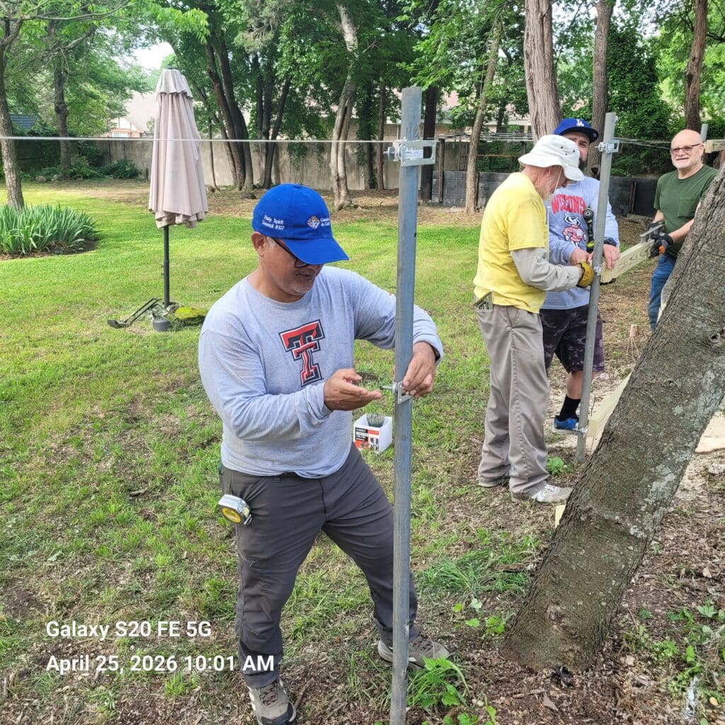 If you look at these before pictures, you got to wonder how in the world we are going to get this mess cleaned up and get a new fence installed. But 6 Knight Hands, on Saturday morning April 15, 2026, were undaunted by this gigantic undertaking and soon began tearing out the old fence and commencing the process of installing a new one. I had some idea how to do that; but the brain power of those working knew better than I, and together they figured out the best way to install the new fence. And by looking at the finished product, they certainly knew what they were talking about. This fence was approximately 80’ long and all the 2 x 4’s and pickets had to be replaced, plus one new post.