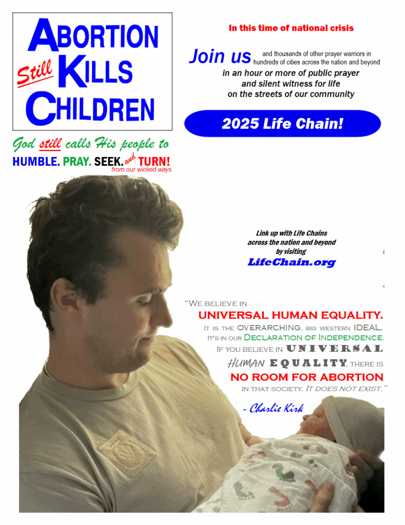 Our Past Grand Knight of council 8157, Worthy SK Jim Richardson (2016-2018), who moved away from our area a couple of years ago and now lives in Georgetown, TX, is still very much putting his faith into action by standing up for LIFE. He is pictured here proudly attending the National Life Chain event that took place in Georgetown, TX on Oct 5.